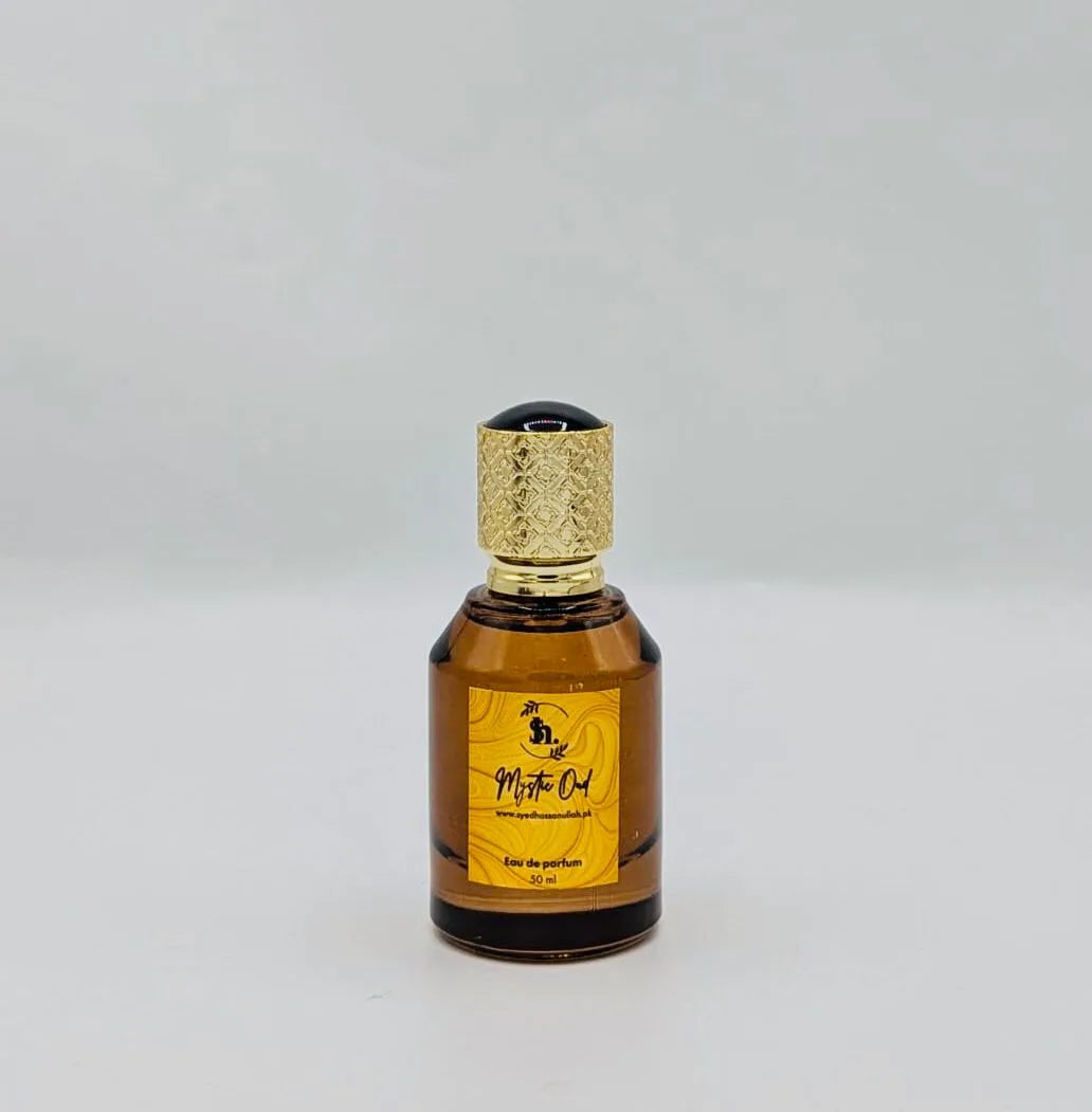 Mystic Oud is a bold expression of strength, sophistication, and spiritual depth. It opens with the radiant warmth of saffron intertwined with the subtle spice of freshly crushed nutmeg creating an intense yet refined first impression.
